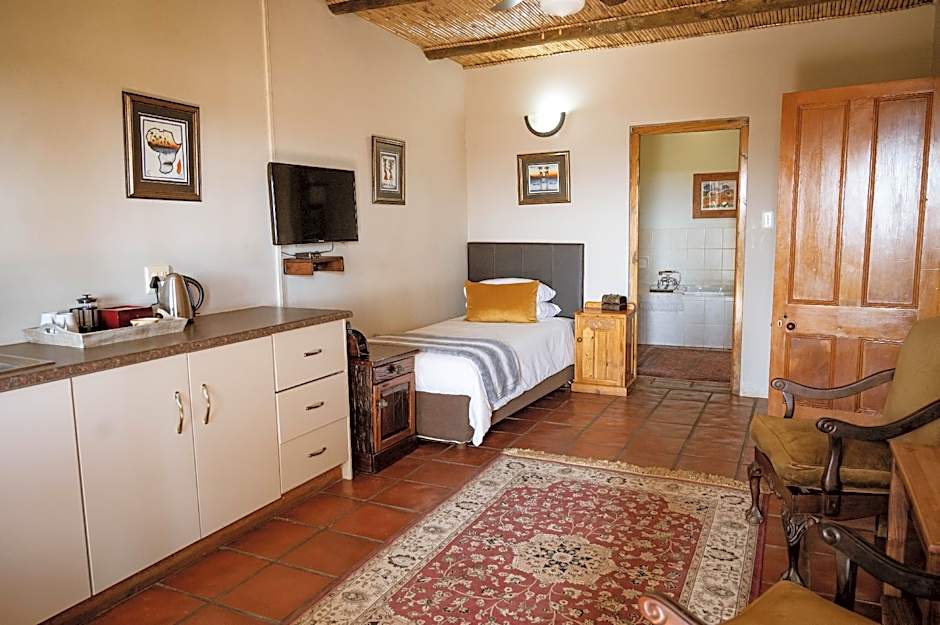 Located on Volmoed Road, off the R328, this 4-star country guest house sits about 6,3 mi from Oudtshoorn’s city center. The setting welcomes travelers with a terrace that offers Mountain view and Garden view, setting the tone for a charming country escape.